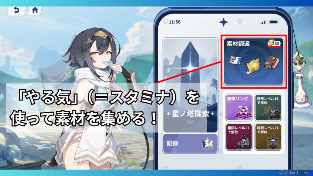 「素材調達」は、「星ノ塔」で作成した「記録」がないと挑戦できません!